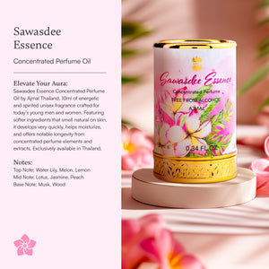 🌸 Sawasdee Essence (10ml): หอมฟุ้งด้วยกลิ่น ดอกไม้ ไทยและผลไม้ฉ่ำๆ อย่างพีช ให้ลุคที่ดูสดใส มีชีวิตชีวา
