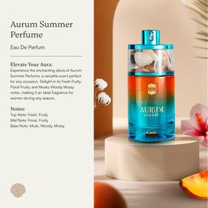 สัมผัสเสน่ห์เย้ายวนของ Aurum Summer Perfume น้ำหอมติดทนนาน ผู้หญิง กลิ่นหลากหลายที่เหมาะกับทุกโอกาส เพลิดเพลินกับกลิ่นหอมสดชื่นของผลไม้ กลิ่นฟลอรัลฟรุตตี้ และกลิ่นมัสกี้วูดดี้มอสซี่ เหมาะอย่างยิ่งสำหรับผู้หญิงในทุกฤดูกาล