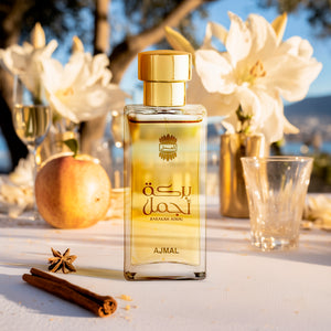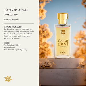 Barakah Ajmal น้ำหอมติดทนนานสำหรับทุกเพศ Eau de Parfum ที่เหมาะสำหรับทุกโอกาส สัมผัสกลิ่นหอมจากโอ เดอ พาร์ฟูม อันเลอค่าด้วยผลไม้และเครื่องเทศ ตามด้วยกลิ่นดอกไม้ และเบสไม้กฤษณาผสมมัสก์ เหมาะสำหรับทุกฤดูกาล