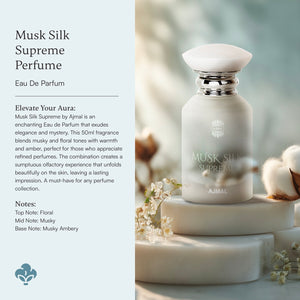 สัมผัสมนต์เสน่ห์แห่งความหรูหรา Musk Silk Supreme Eau De Parfum น้ำหอมขนาด 50 ml ที่ถักทอความงดงามอันลึกลับ ผ่านการผสมผสานกลิ่นฟลอรัลอ่อนหวาน เข้ากับความอบอุ่นละเมียดละไมของมัสก์ และความลุ่มลึกจากแอมเบอร์ ราวกับผ้าไหมที่โอบรอบผิวกายอย่างอ่อนโยน กลิ่นหอมนี้ค่อยๆ คลี่ตัวอย่างสง่างาม ทิ้งร่องรอยความประทับใจอันตราตรึงในทุกย่างก้าว คือไอเท็มที่ควรค่าแก่การมีไว้ในคอลเลกชันของผู้ที่รักความหรูหราเหนือกาลเวลา